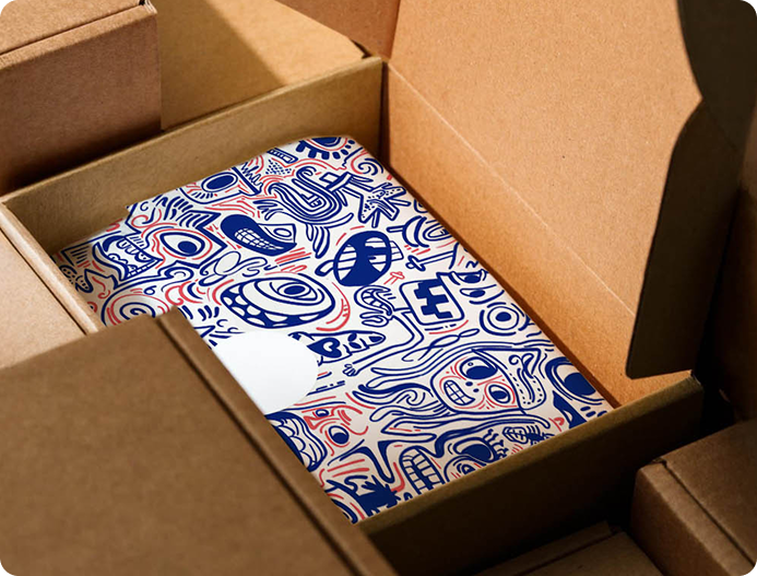 Enhance your packaging experience with custom-printed tissue paper that complements your custom boxes. Match it to your box color or create a cohesive look with a repeating pattern of your design. This added detail elevates the unboxing experience, building excitement and anticipation for your customers.